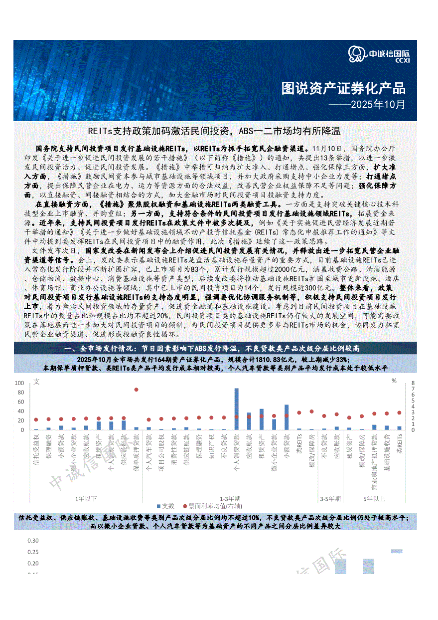 中诚信国际-图说资产证券化产品2025年10月:REITs支持政策加码激活民间投资,ABS一二市场均有所降温-251218
