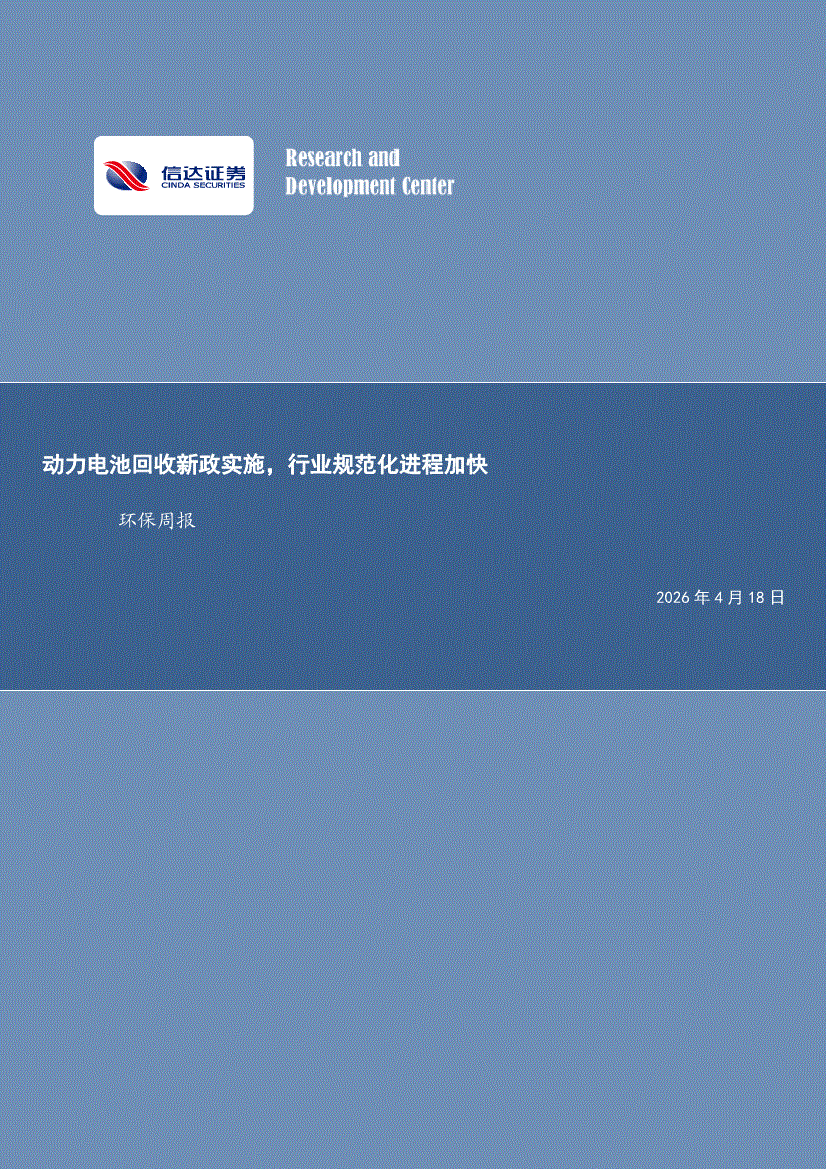 环保行业:信达证券-环保行业周报:动力电池回收新政实施,行业规范化进程加快-260418