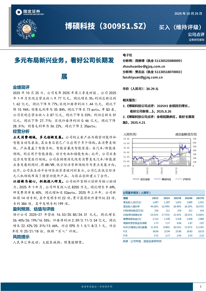 博硕科技:国金证券-博硕科技-300951-多元布局新兴业务,看好公司长期发展-251025
