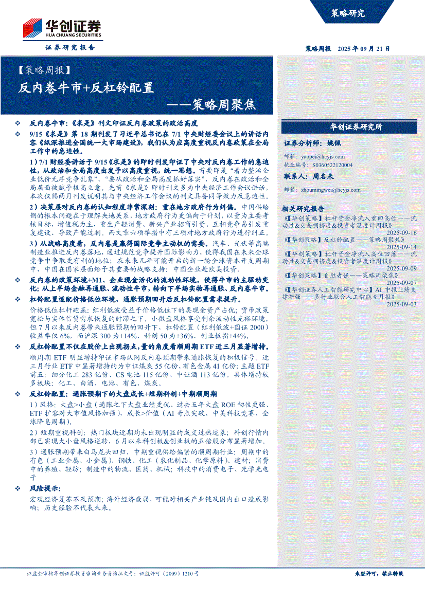 华创证券-策略周聚焦:反内卷牛市+反杠铃配置-250921