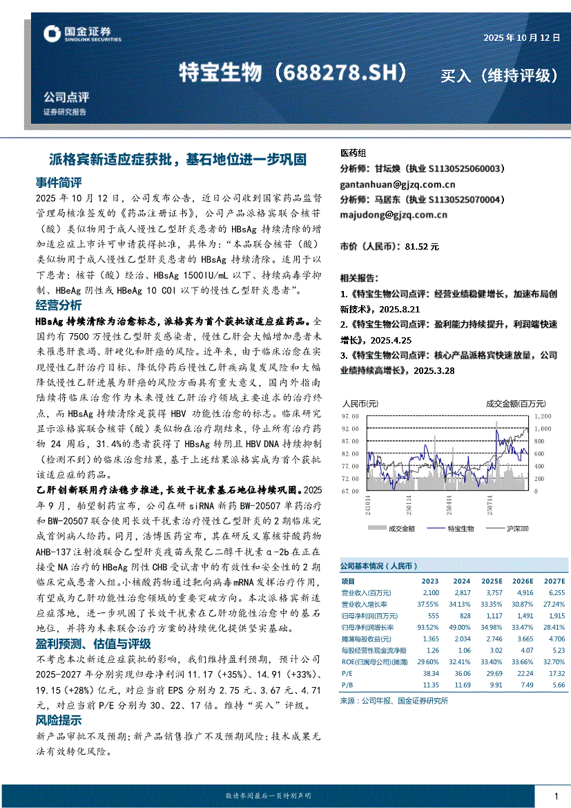 特宝生物:国金证券-特宝生物-688278-派格宾新适应症获批,基石地位进一步巩固-251012