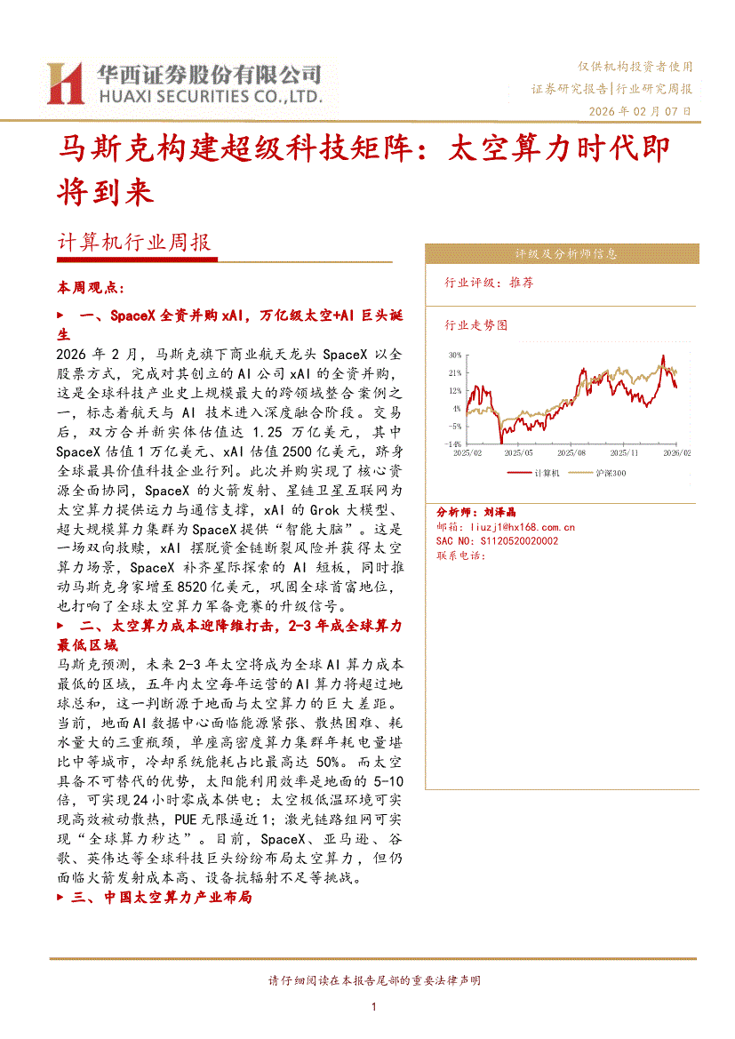 计算机行业:华西证券-计算机行业周报:马斯克构建超级科技矩阵,太空算力时代即将到来-260207