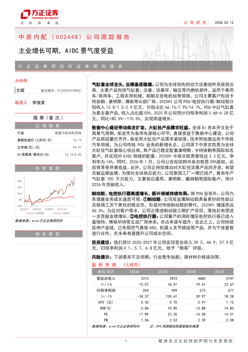 中原内配:方正证券-中原内配-002448-公司跟踪报告:主业增长可期,AIDC景气度受益-260212