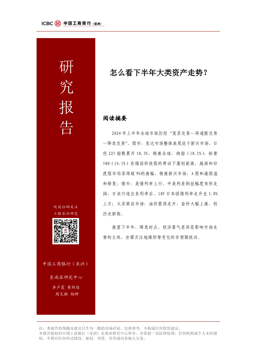工银亚洲-研究报告:怎么看下半年大类资产走势?-240722