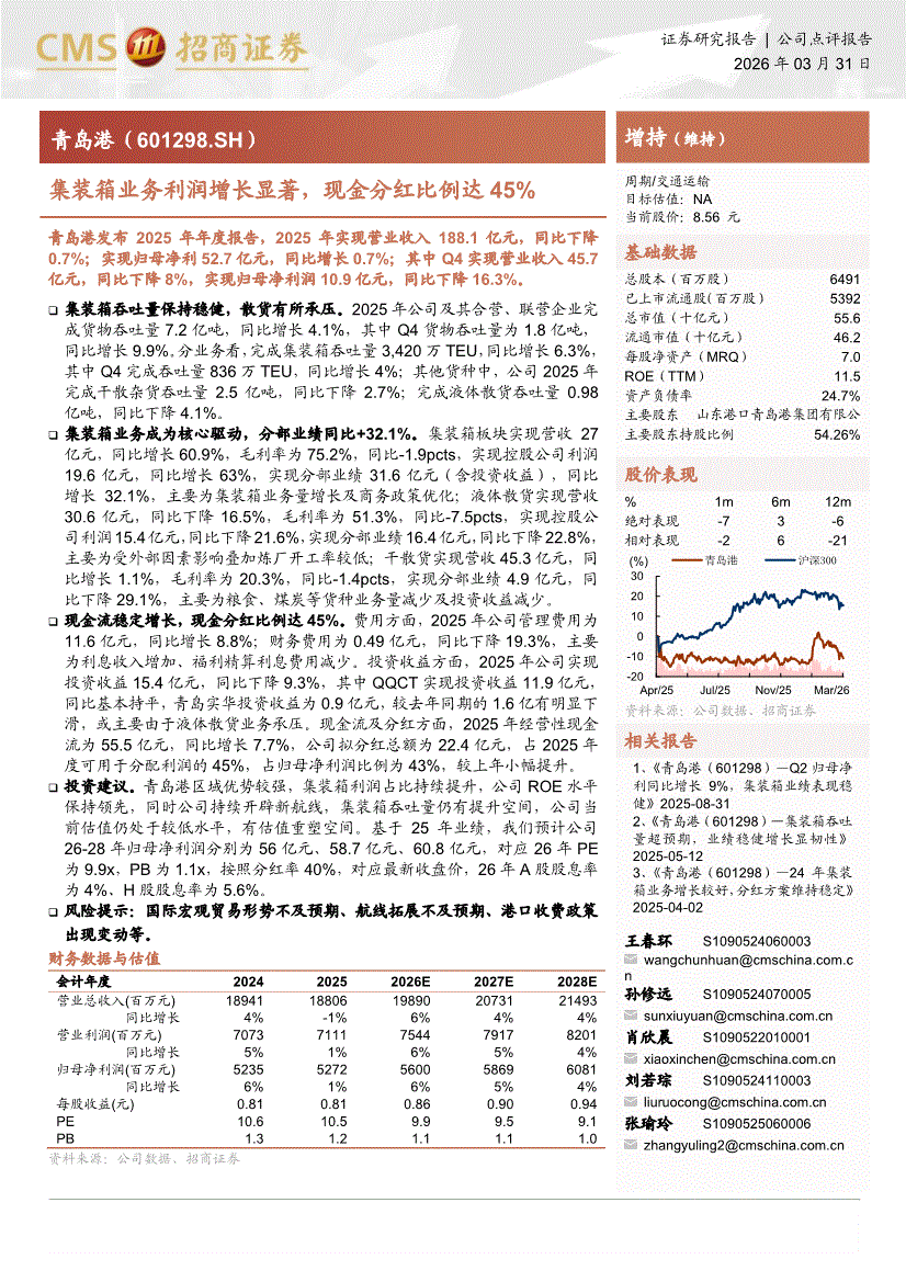 青岛港:招商证券-青岛港-601298-集装箱业务利润增长显著,现金分红比例达45%-260331