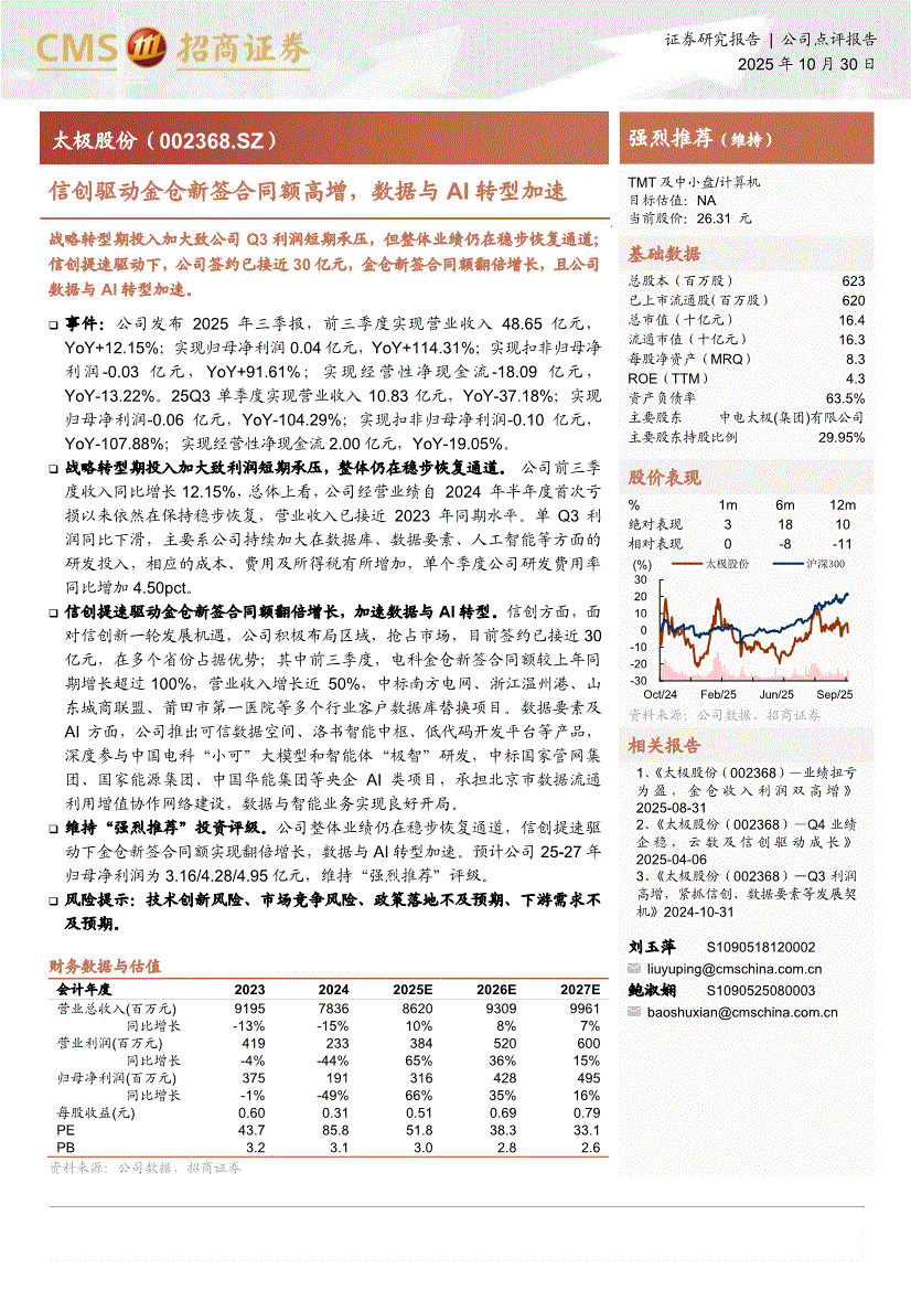 太极股份:招商证券-太极股份-002368-信创驱动金仓新签合同额高增,数据与AI转型加速-251030