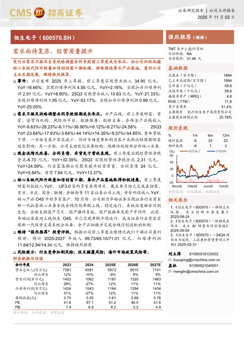 恒生电子:招商证券-恒生电子-600570-需求尚待复苏,经营质量提升-251102