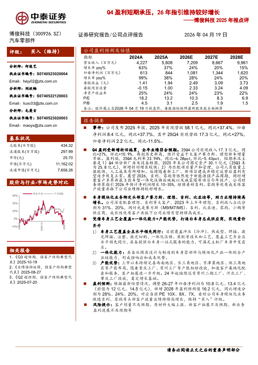 博俊科技:中泰证券-博俊科技-300926-2025年报点评:Q4盈利短期承压,26年指引维持较好增长-260419