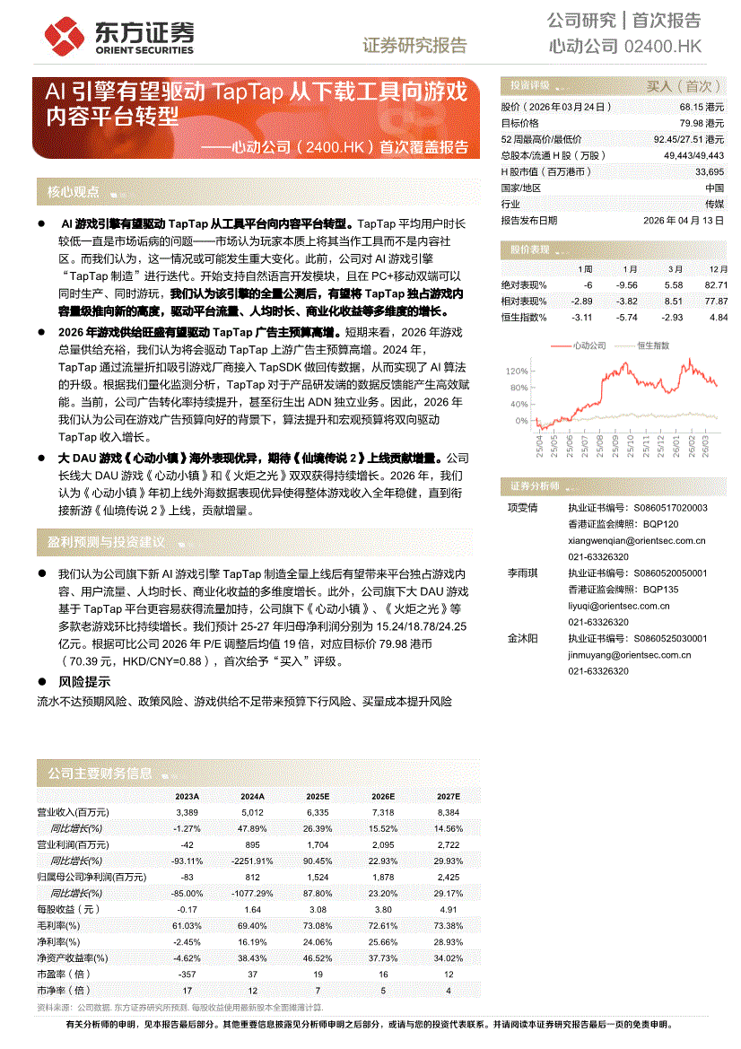心动公司:东方证券-心动公司-2400.HK-首次覆盖报告:AI引擎有望驱动TapTap从下载工具向游戏内容平台转型-260413