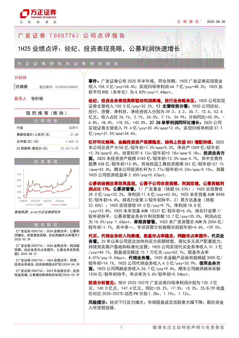 广发证券:方正证券-广发证券-000776-1H25业绩点评:经纪、投资表现亮眼,公募利润快速增长-250830
