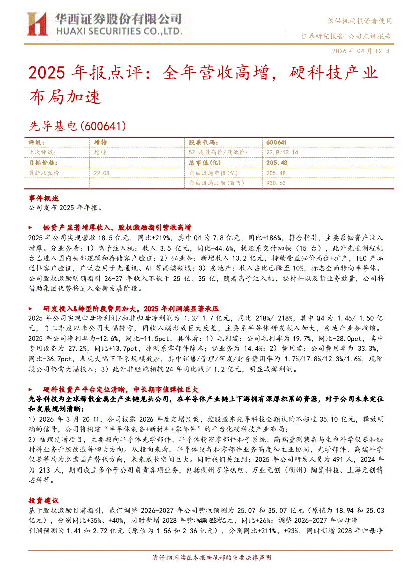 先导基电:华西证券-先导基电-600641-2025年报点评:全年营收高增,硬科技产业布局加速-260412