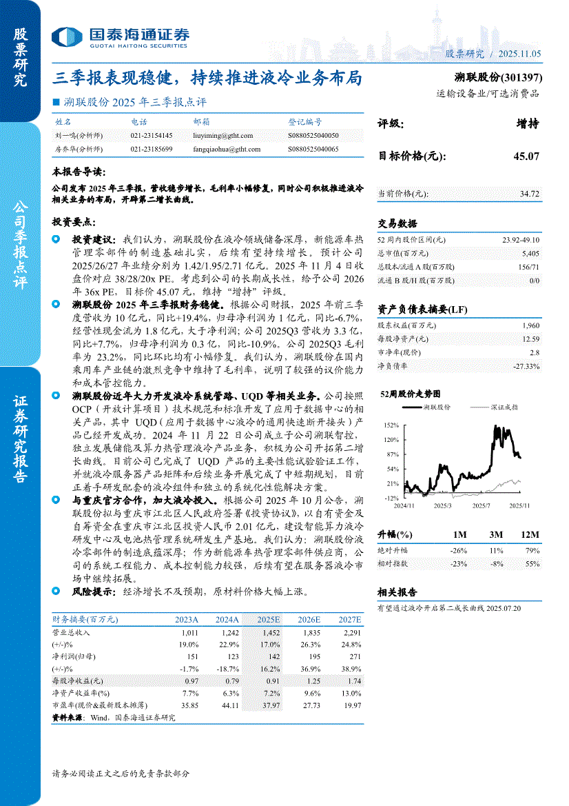溯联股份:国泰海通证券-溯联股份-301397-2025年三季报点评:三季报表现稳健,持续推进液冷业务布局-251105