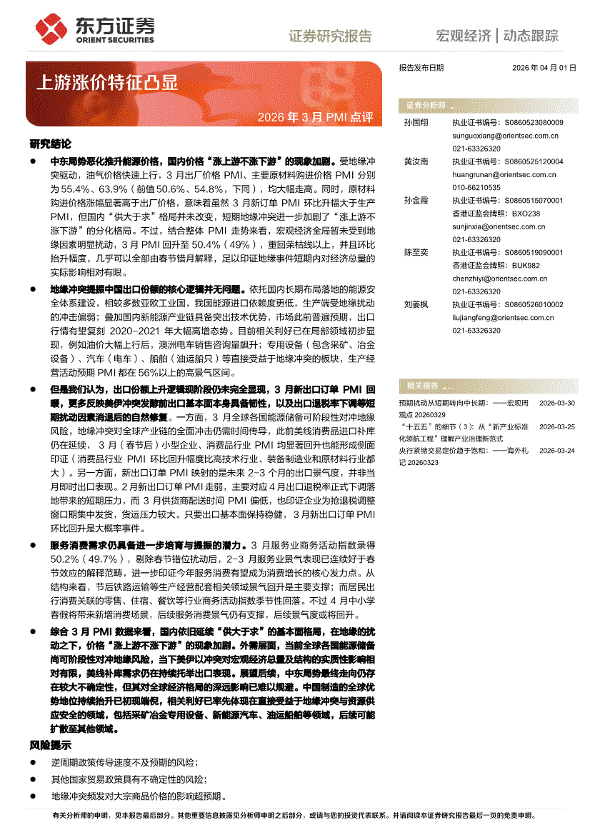 东方证券-2026年3月PMI点评:上游涨价特征凸显-260401