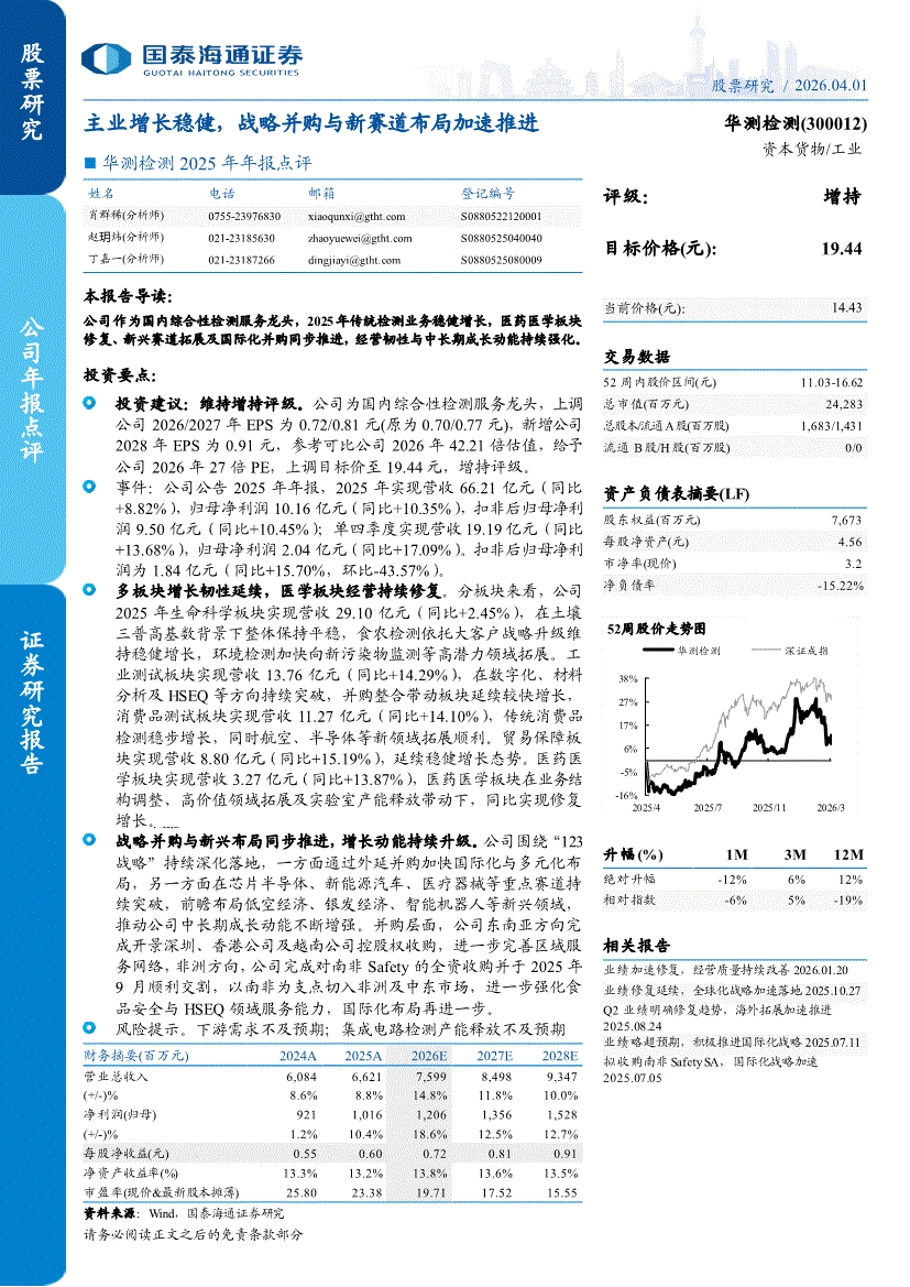 华测检测:国泰海通证券-华测检测-300012-2025年年报点评:主业增长稳健,战略并购与新赛道布局加速推进-260401