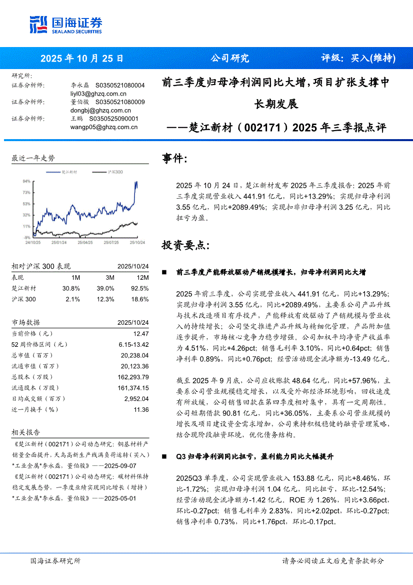 楚江新材:国海证券-楚江新材-002171-2025年三季报点评:前三季度归母净利润同比大增,项目扩张支撑中长期发展-251025