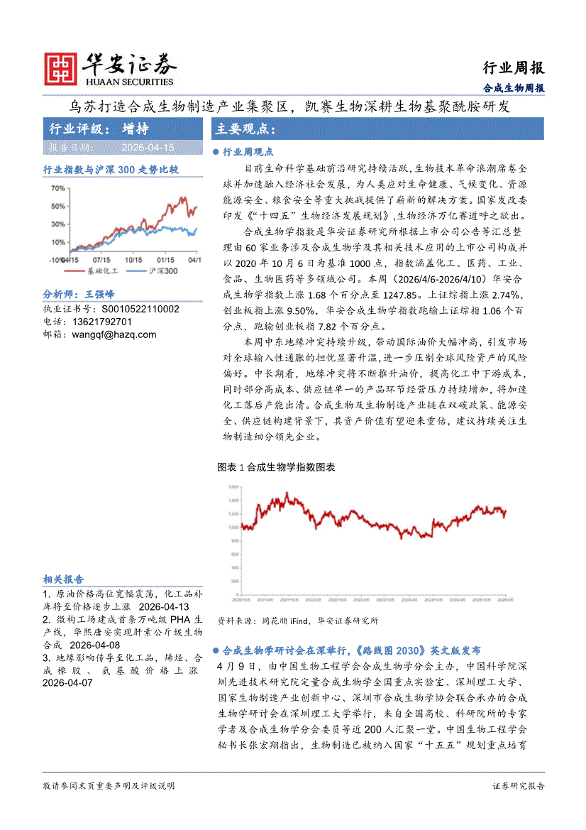合成生物行业:华安证券-合成生物行业周报:乌苏打造合成生物制造产业集聚区,凯赛生物深耕生物基聚酰胺研发-260415