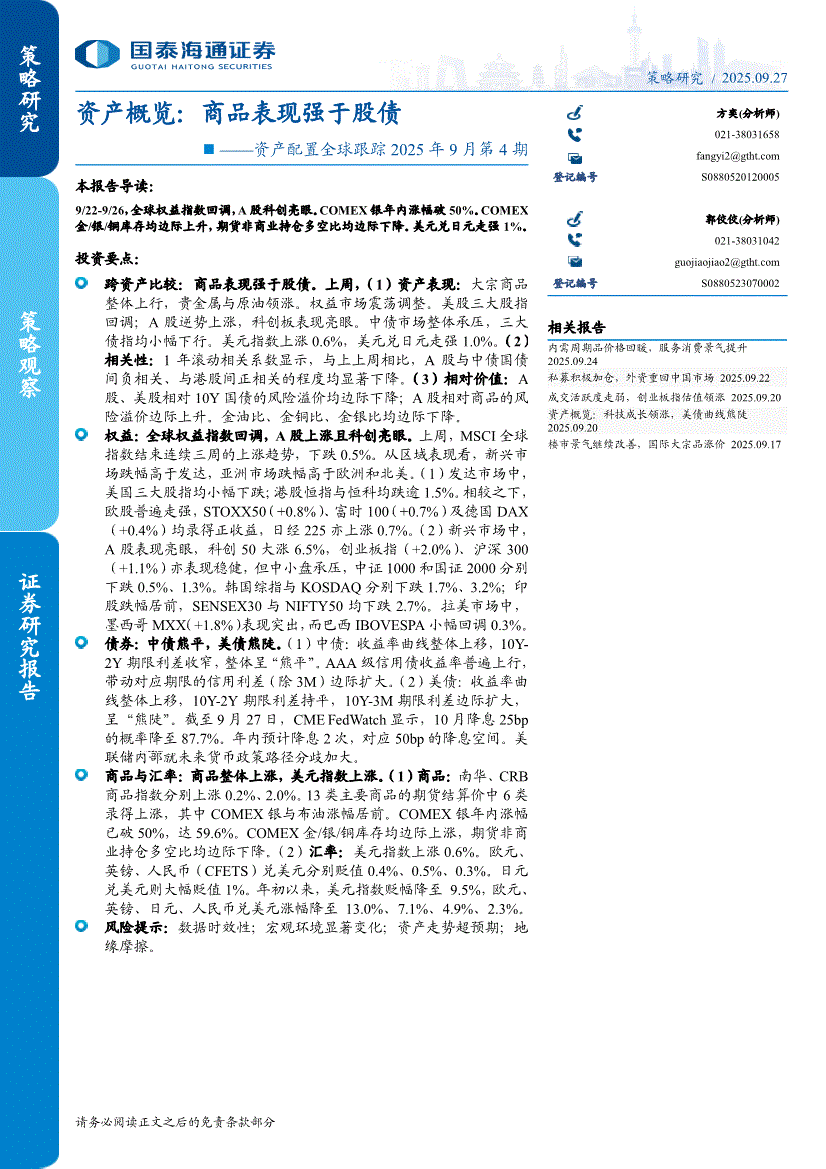 国泰海通证券-资产配置全球跟踪2025年9月第4期:资产概览,商品表现强于股债-250927