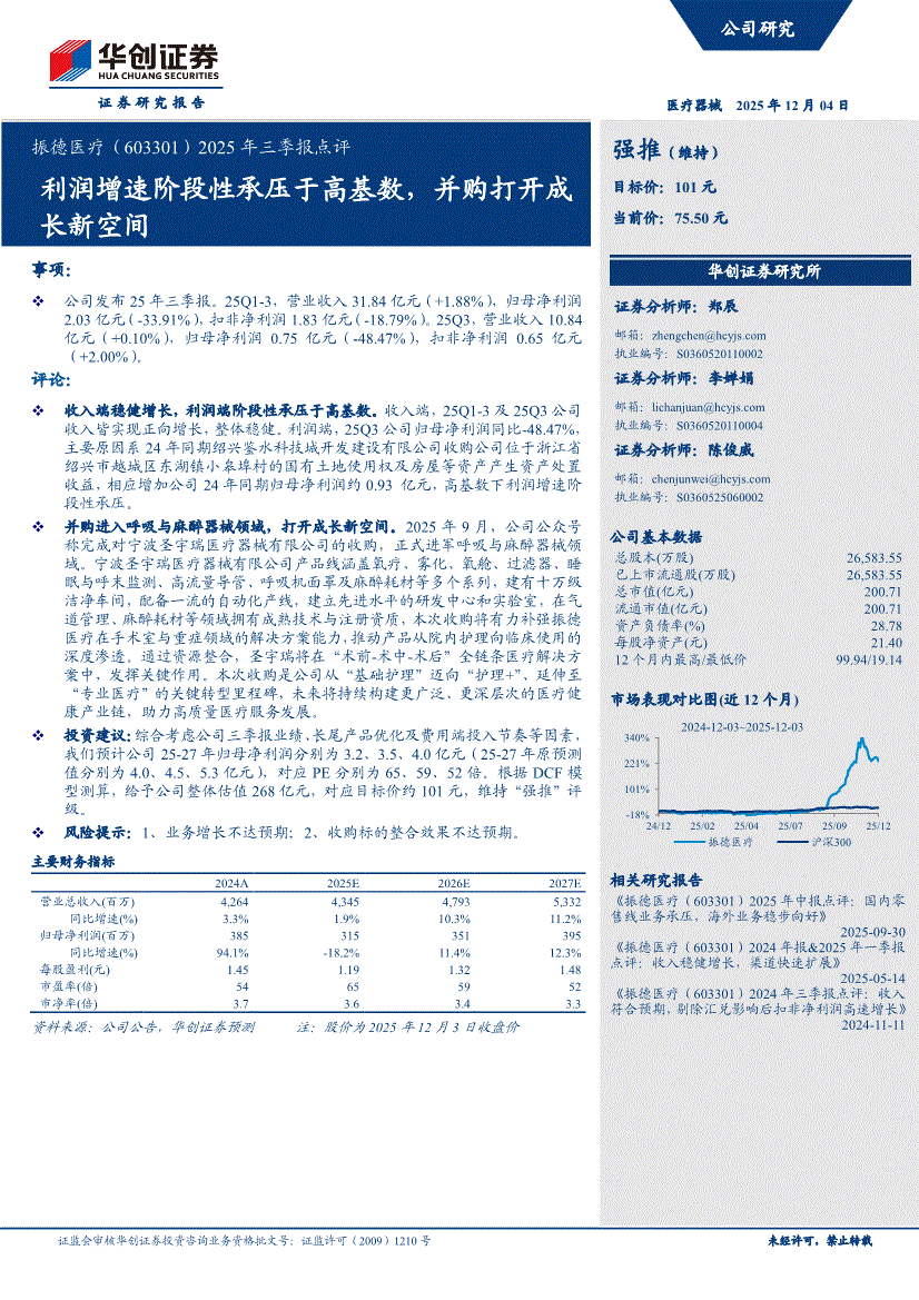 振德医疗:华创证券-振德医疗-603301-2025年三季报点评:利润增速阶段性承压于高基数,并购打开成长新空间-251204