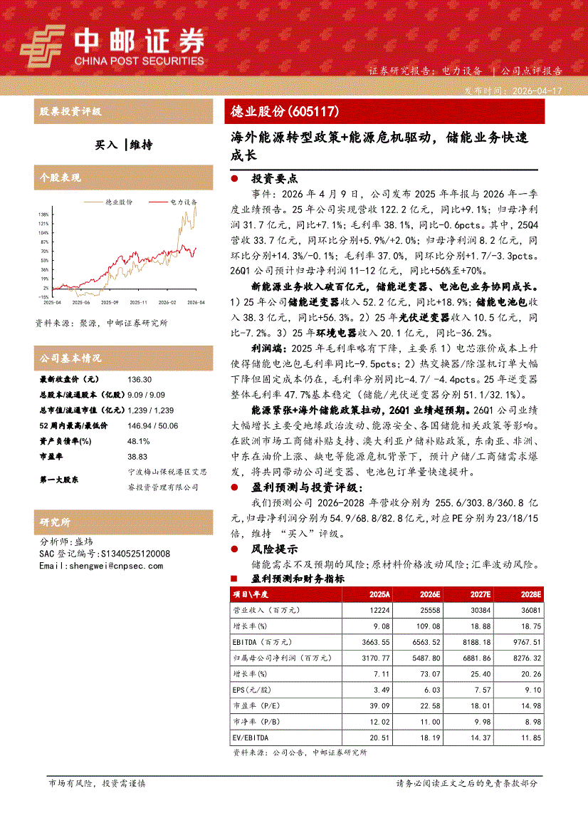 德业股份:中邮证券-德业股份-605117-海外能源转型政策+能源危机驱动,储能业务快速成长-260417