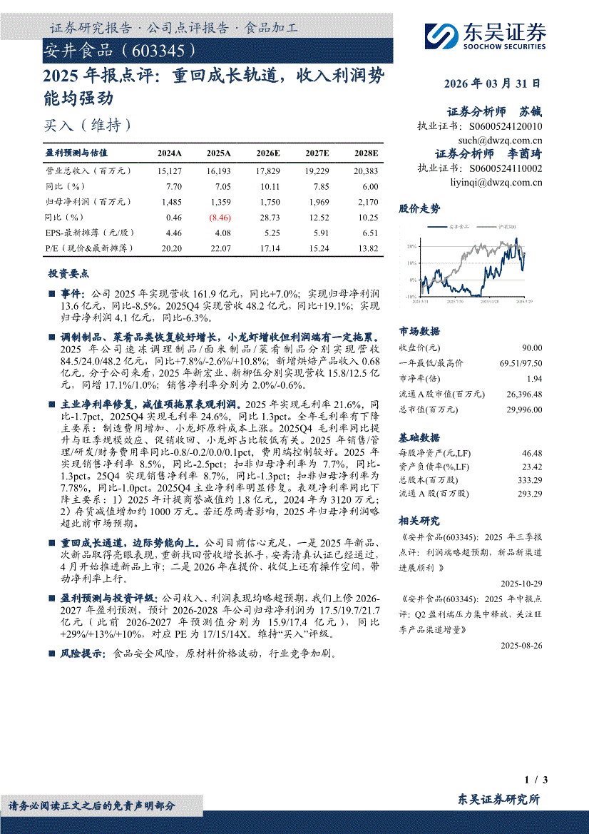 安井食品:东吴证券-安井食品-603345-2025年报点评:重回成长轨道,收入利润势能均强劲-260331