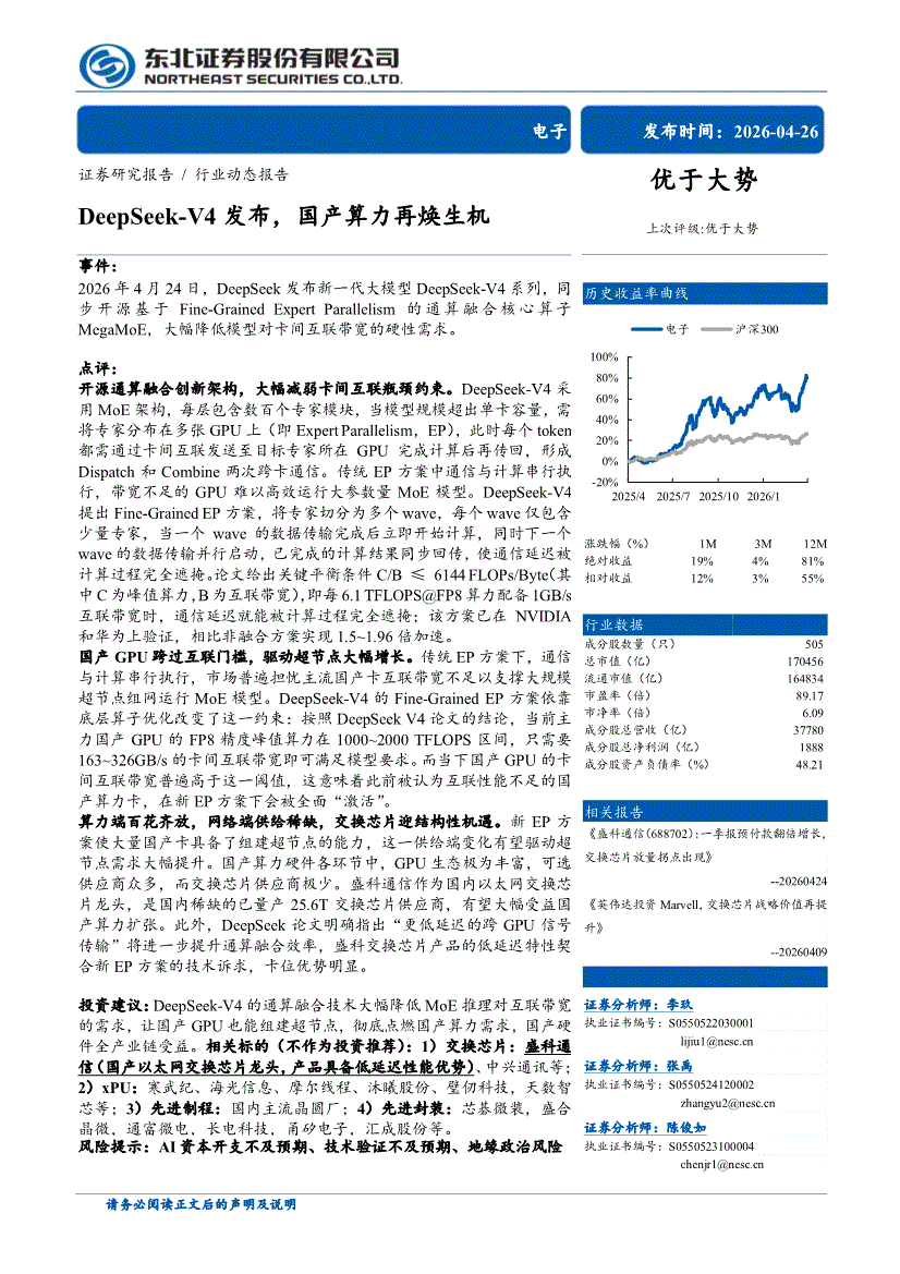 东北证券-电子行业周报:DeepSeek~V4点燃国产算力时代,光通信与先进封装迎来市场新力量-260426