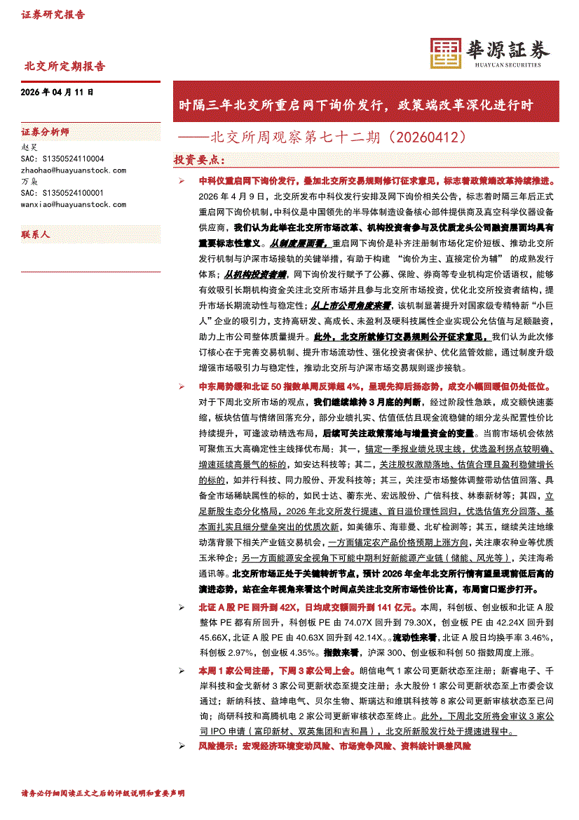 华源证券-北交所周观察第七十二期:时隔三年北交所重启网下询价发行,政策端改革深化进行时-260411