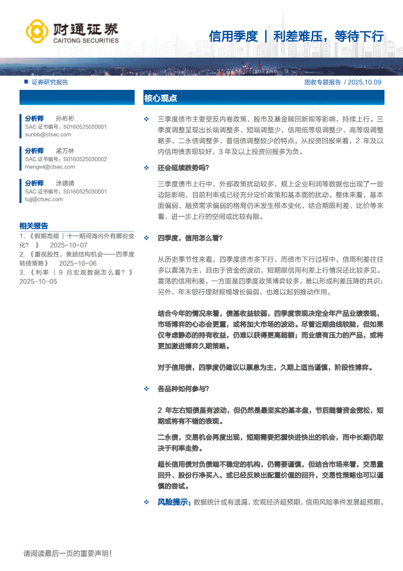 西部证券-10月信用月报:震荡格局延续,票息策略占优-251007