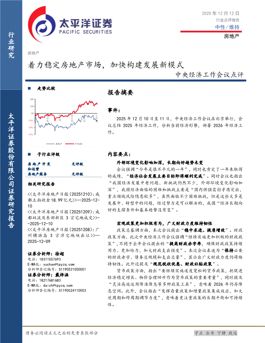 房地产行业:太平洋证券-房地产行业中央经济工作会议点评:着力稳定房地产市场,加快构建发展新模式-251212