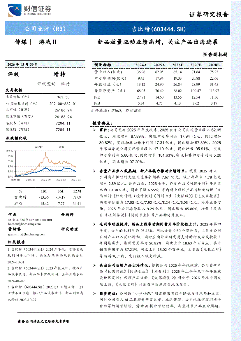 吉比特:财信证券-吉比特-603444-新品放量驱动业绩高增,关注产品出海进展-260330