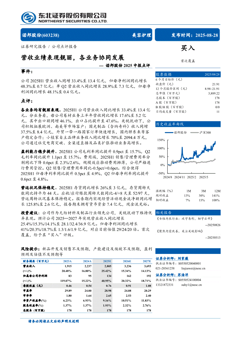 诺邦股份:东北证券-诺邦股份-603238-2025中报点评:营收业绩表现靓丽,各业务协同发展-250828