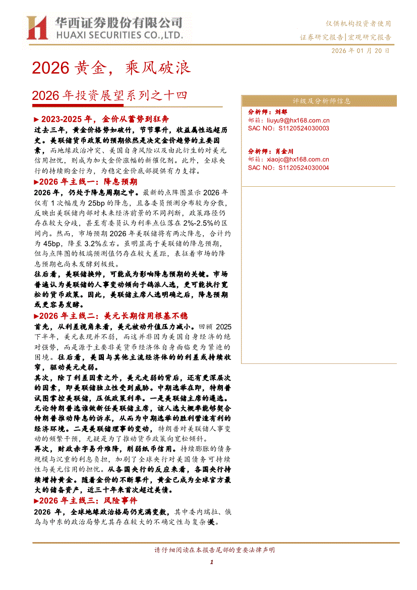 华西证券-2026年投资展望系列之十四:2026黄金,乘风破浪-260120
