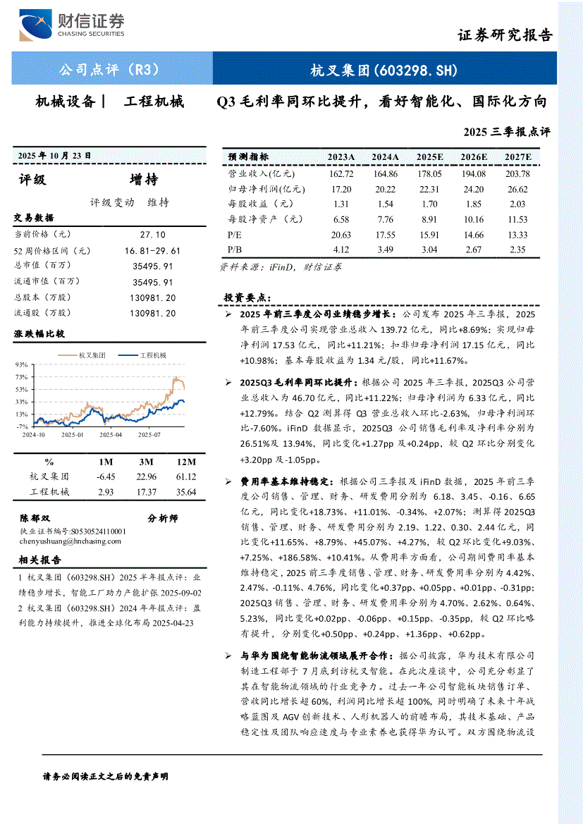 杭叉集团:财信证券-杭叉集团-603298-2025三季报点评:Q3毛利率同环比提升,看好智能化、国际化方向-251023