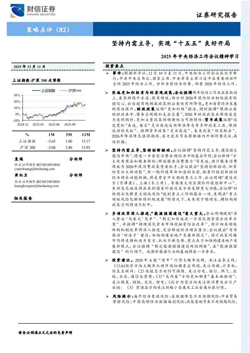 财信证券-2025年中央经济工作会议精神学习:坚持内需主导,实现“十五五”良好开局-251211