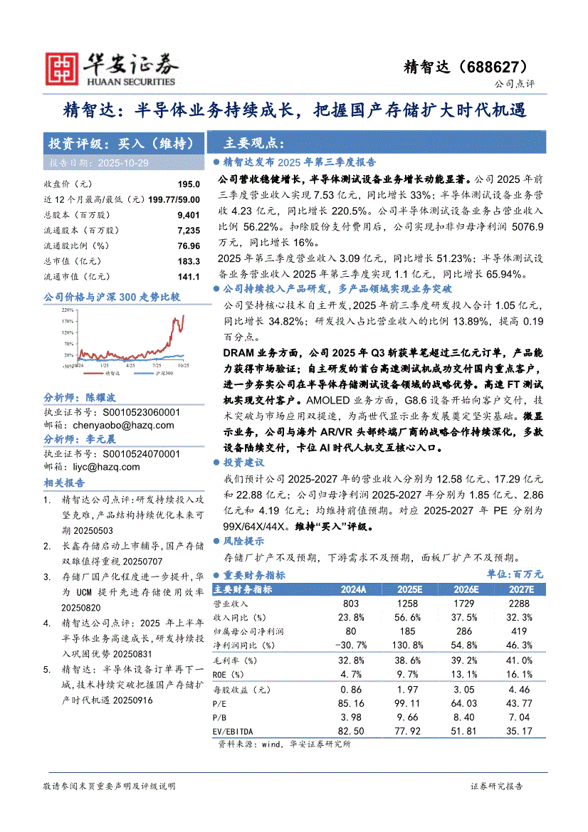 精智达:华安证券-精智达-688627-半导体业务持续成长,把握国产存储扩大时代机遇-251029