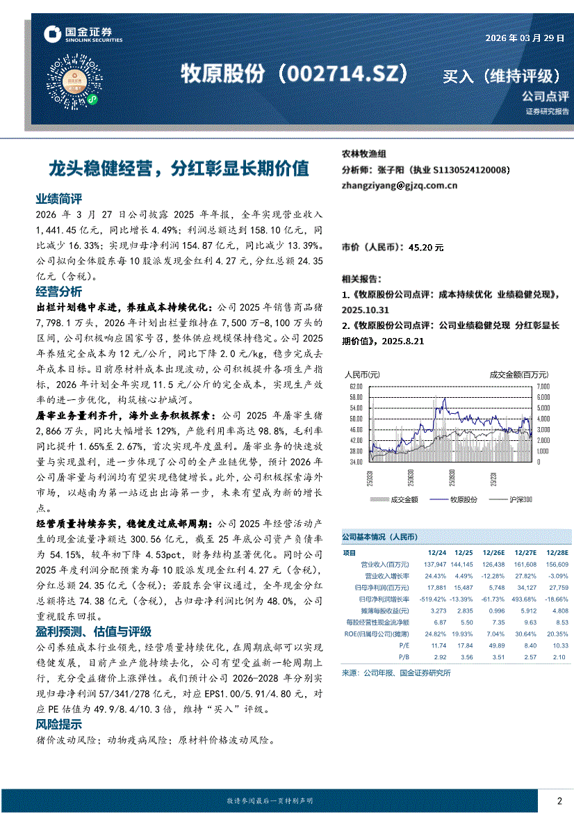 牧原股份:国金证券-牧原股份-002714-龙头稳健经营,分红彰显长期价值-260329
