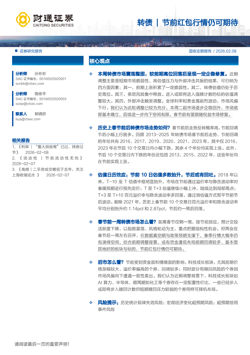 财通证券-转债|何时企稳?——0202市场点评-260203