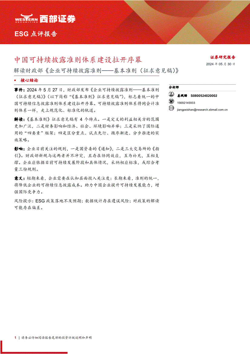 西部证券-ESG点评报告:解读财政部《企业可持续披露准则~基本准则(征求意见稿)》,中国可持续披露准则体系建设拉开序幕-240530