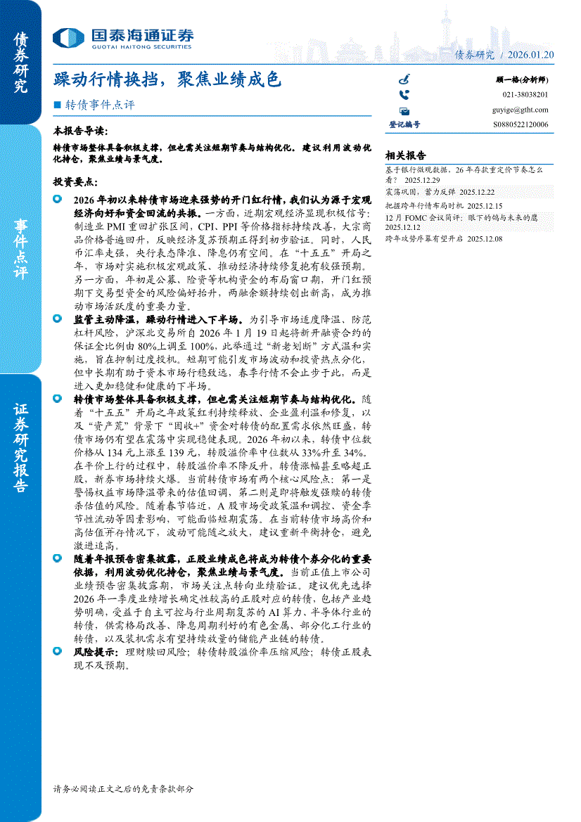 国泰海通证券-转债事件点评:躁动行情换挡,聚焦业绩成色-260120