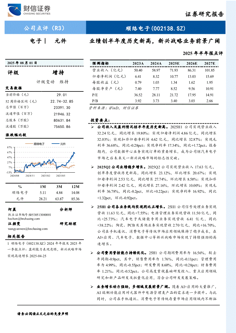 顺络电子:财信证券-顺络电子-002138-2025年半年报点评:业绩创半年度历史新高,新兴战略业务前景广阔-250801