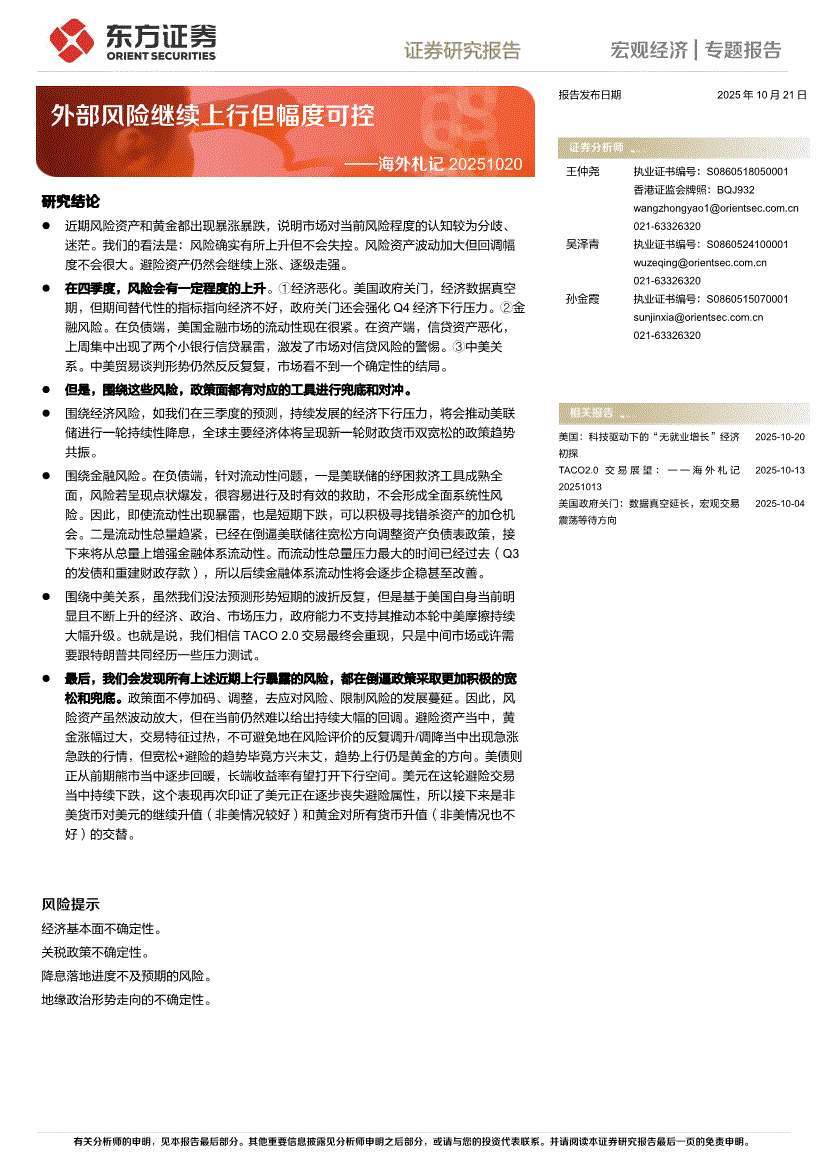 东方证券-海外札记:外部风险继续上行但幅度可控-251021