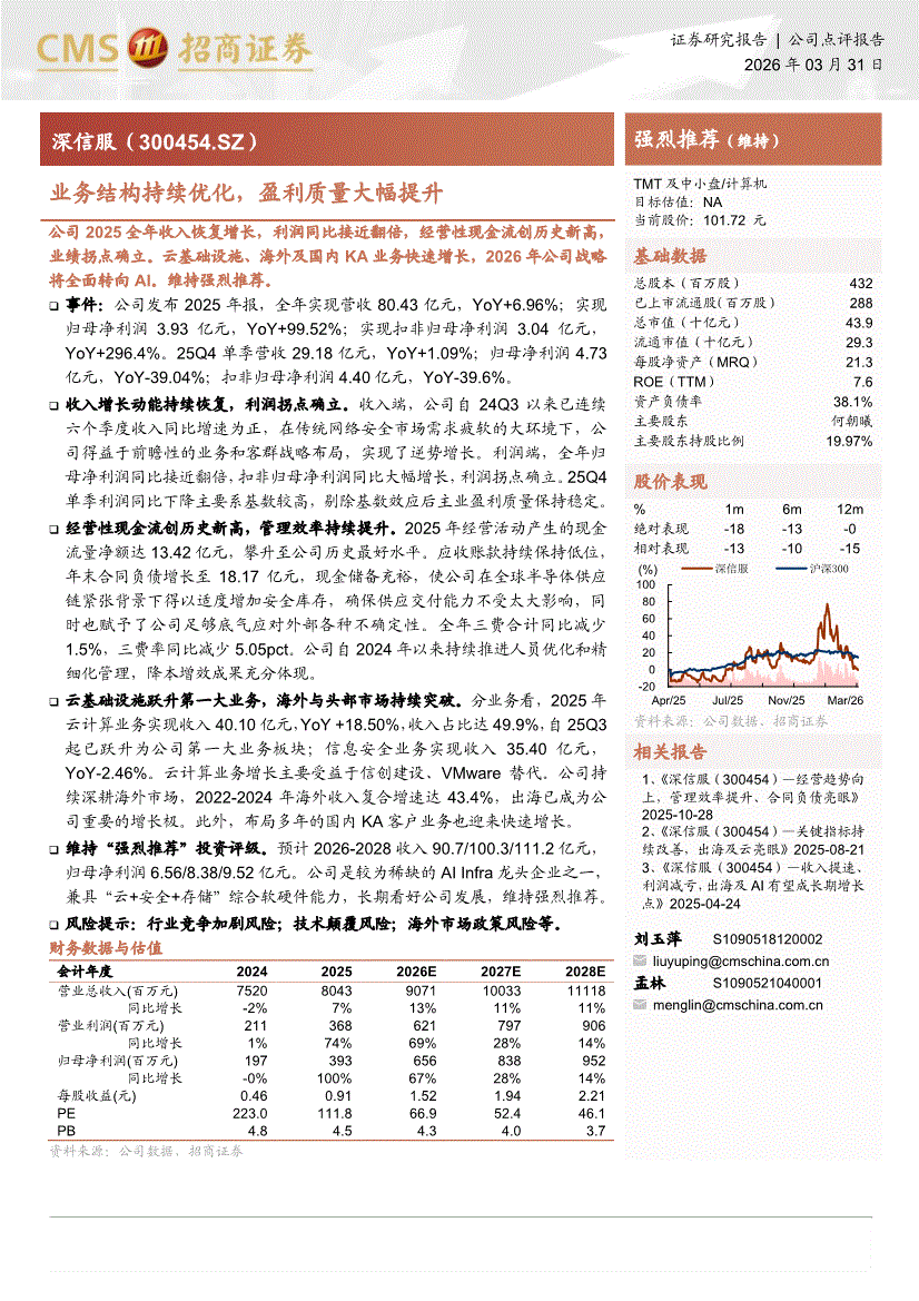 深信服:招商证券-深信服-300454-业务结构持续优化,盈利质量大幅提升-260331