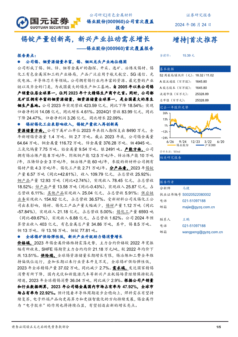 锡业股份:国元证券-锡业股份-000960-首次覆盖报告:锡锭产量创新高,新兴产业拉动需求增长-240624
