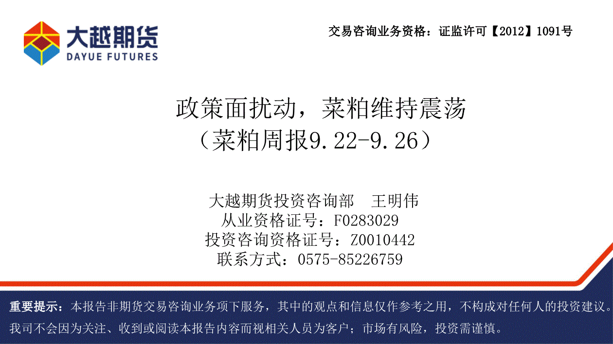 大越期货-菜粕周报:政策面扰动,菜粕维持震荡-250926