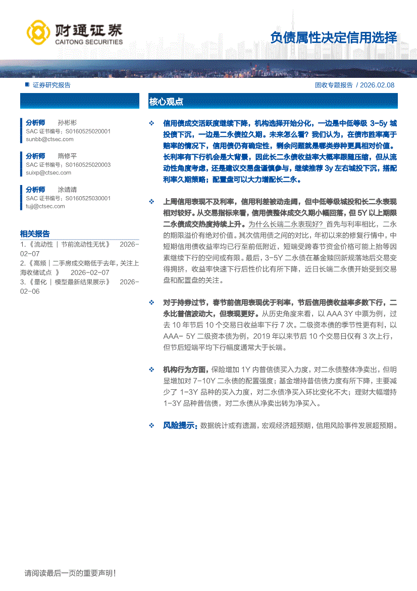 财通证券-固收专题报告:负债属性决定信用选择-260208