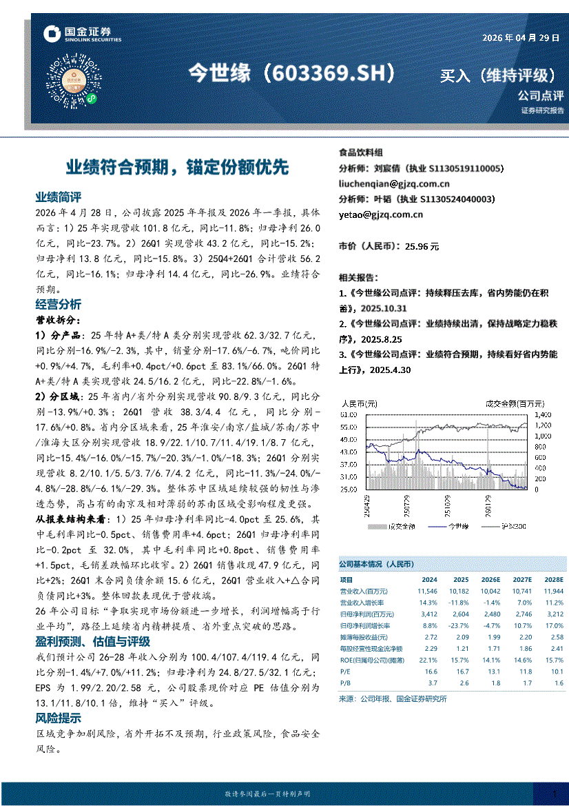 今世缘:国金证券-今世缘-603369-业绩符合预期,锚定份额优先-260429
