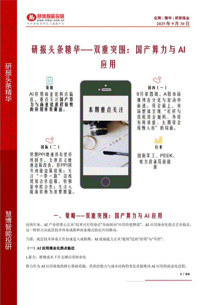 慧博智能投研-慧博研报炼金之研报头条精华:双重突围,国产算力与AI应用-250930