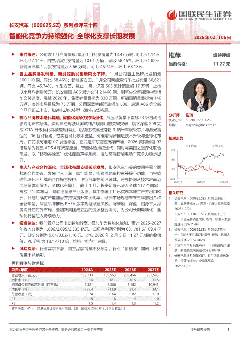 长安汽车:国联民生证券-长安汽车-000625-系列点评三十四:智能化竞争力持续强化,全球化支撑长期发展-260206