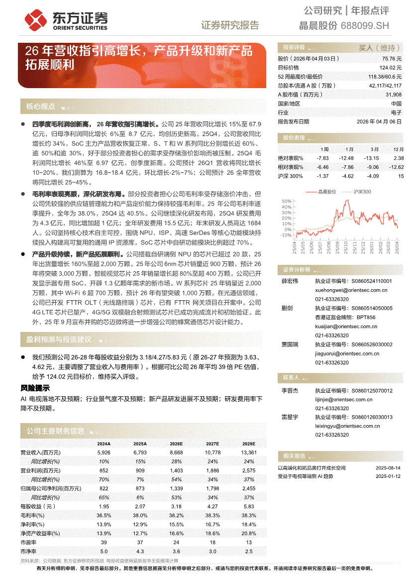晶晨股份:东方证券-晶晨股份-688099-26年营收指引高增长,产品升级和新产品拓展顺利-260406