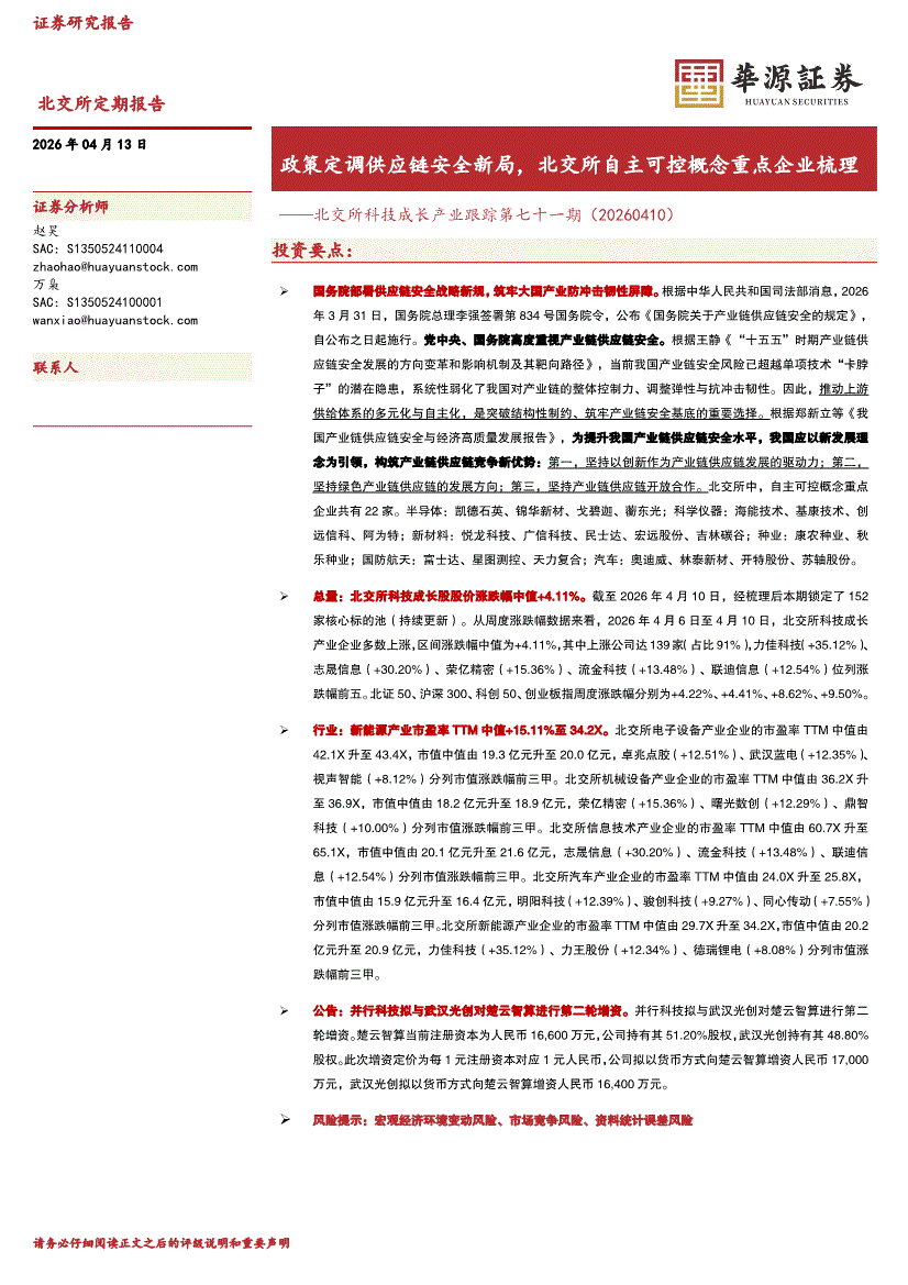 华源证券-北交所科技成长产业跟踪第七十一期:政策定调供应链安全新局,北交所自主可控概念重点企业梳理-260413