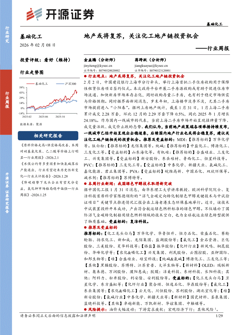 基础化工行业:开源证券-基础化工行业周报:地产或将复苏,关注化工地产链投资机会-260208